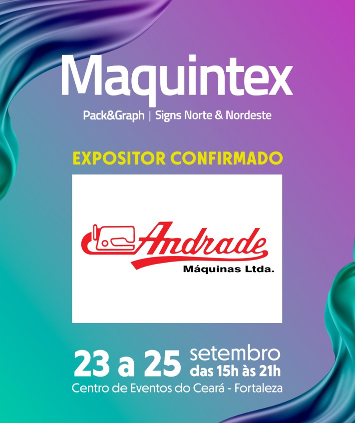 A Andrade Máquinas estará na Maquintex 2025 trazendo máquinas industriais e domésticas para costura. Com mais de 60 anos no mercado, trabalha com marcas como Sansei, Brother, Durkopp Adler e Singer, oferecendo equipamentos para toda a linha de produção têxtil.